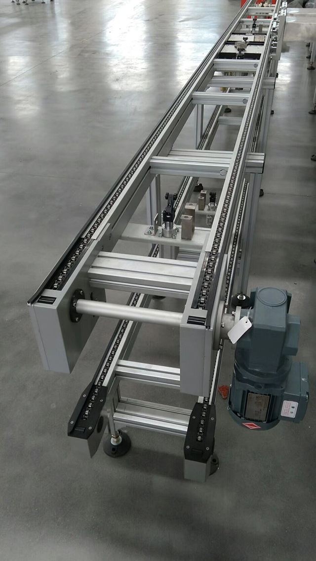 1. 鏈式流水線是以鏈條作為牽引和承載體輸送物料,鏈條可以采用普通的套筒滾子輸送鏈,也可采用其它各種特種鏈條;
