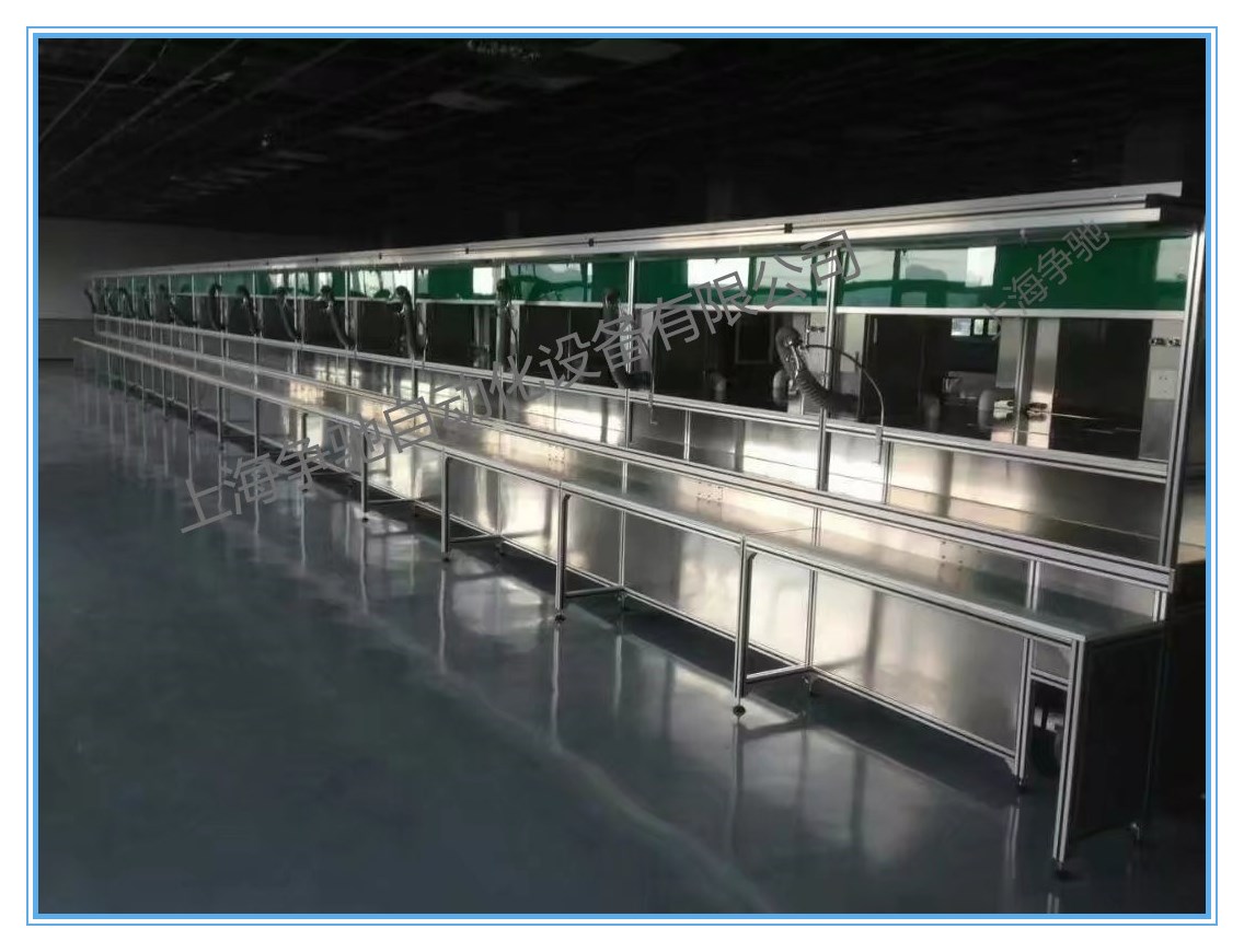 皮帶機結構形式有:槽型皮帶機、平型皮帶機、爬坡皮帶機、轉彎皮帶機等多種形式,輸送帶上還可增設提升擋板、裙邊等附件,能滿足各種工藝要求。輸送機兩側配以工作臺、加裝燈架,可作為電子儀表裝配,食品包裝等皮帶機裝配線。