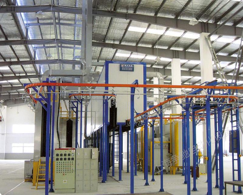 7, hanging chain conveyor equipment can make the workpiece continuously transported by high temperature oven, toxic gas, powder room, frozen zone artificial unsuitable area, complete production process of artificial difficult to operate to improve working conditions of workers, to ensure the safety of the purpose of.