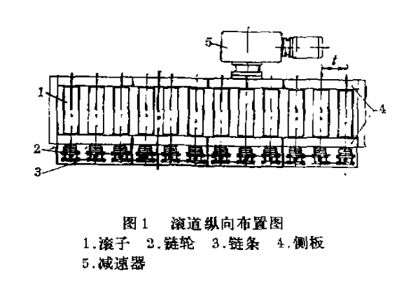 圖1的滾子間距s可根據(jù)被輸送物體的輸送基面和鏈條節(jié)距等參數(shù)經(jīng)計(jì)算確定、我們廠實(shí)際使用的滾筒輸送機(jī)最小節(jié)距t為45mm,最大為17mm,鏈條3為GB1243-76TG095套筒滾予鏈,鏈輪齒數(shù)為14。我廠實(shí)際使用的滾筒輸送機(jī)寬度B為200~800mm。