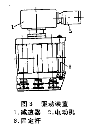 如圖3所示,減速器1懸臂裝在無(wú)鏈輪側(cè)側(cè)板上,占用空間較小。電動(dòng)機(jī)2采用AO2系列或北京微電機(jī)廠生產(chǎn)的GA系列1MB14型電動(dòng)機(jī)。